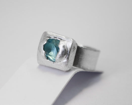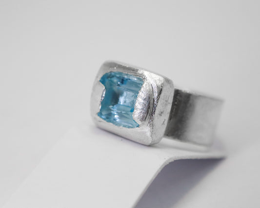 Celestial Object No. 02 – 999 Fine Silver Comet Ring with Sky Blue Topaz