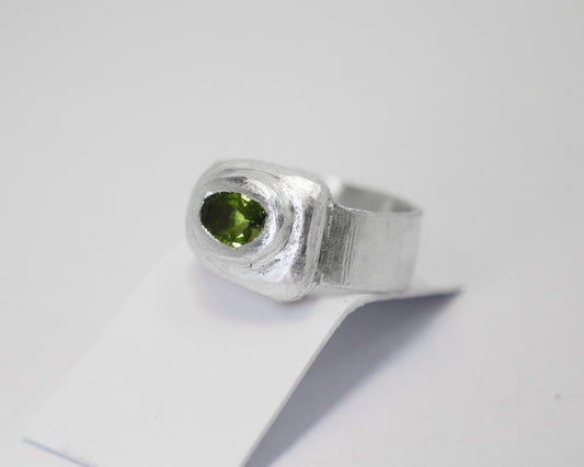 Celestial Object No. 03 – 999 Fine Silver Comet Ring with Green Peridot