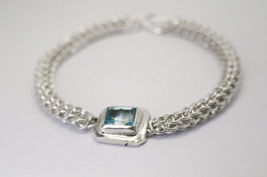 SkyBlue Topaz - One of a Kind Full Persian Chainmail Bracelet – Solid 999 Silver 925 Chainmail