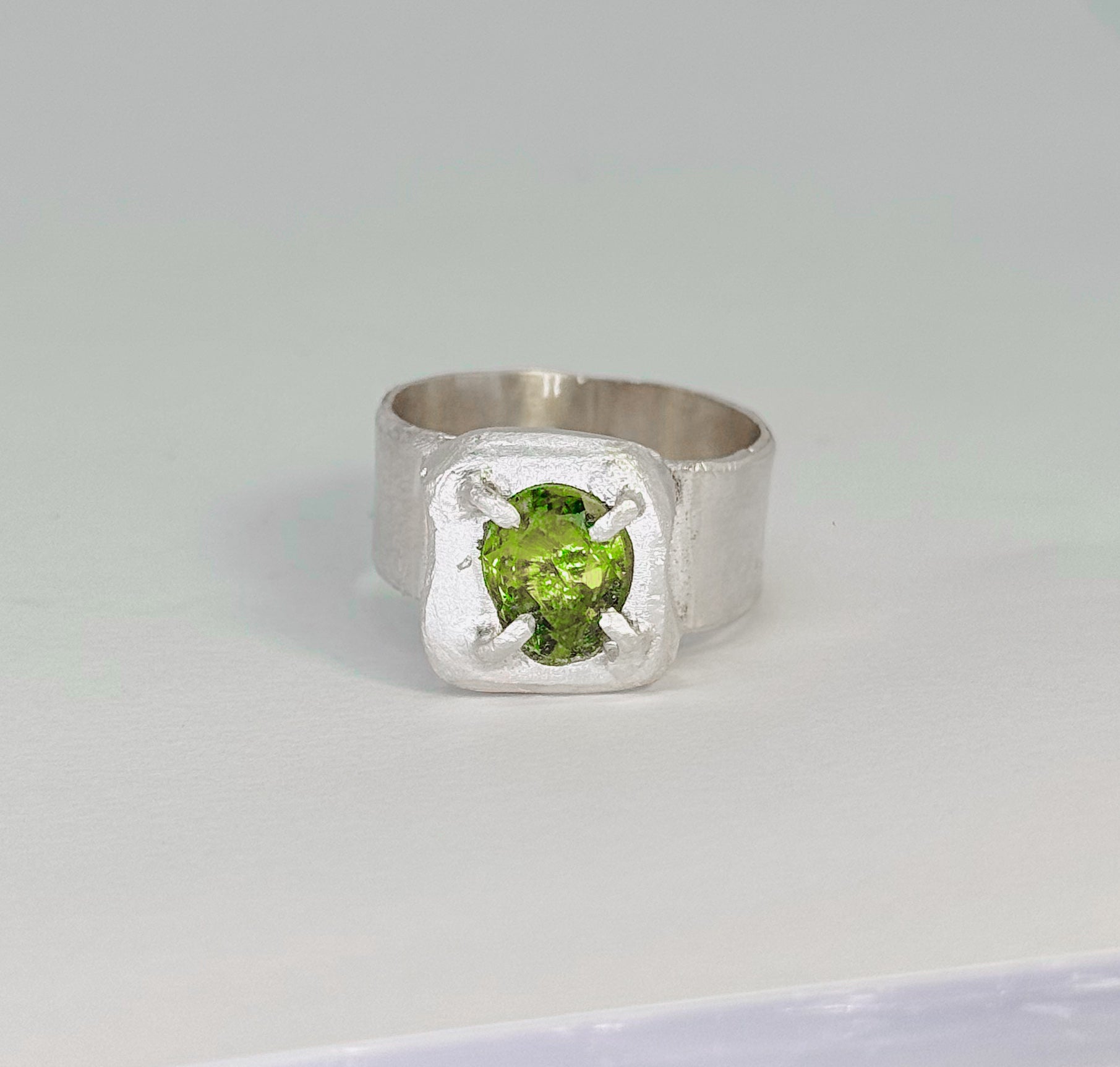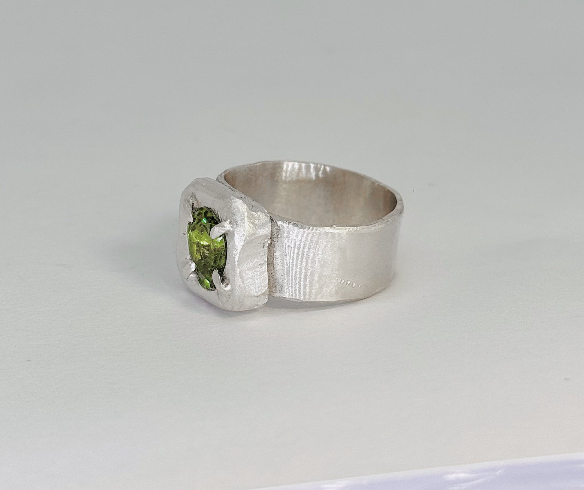The integration of peridot accents adds a touch of ethereal brilliance, its distinctive olive-green radiance creating a striking contrast against the lustrous silver. A sophisticated choice for those who appreciate jewelry that tells a story written across the cosmos.
